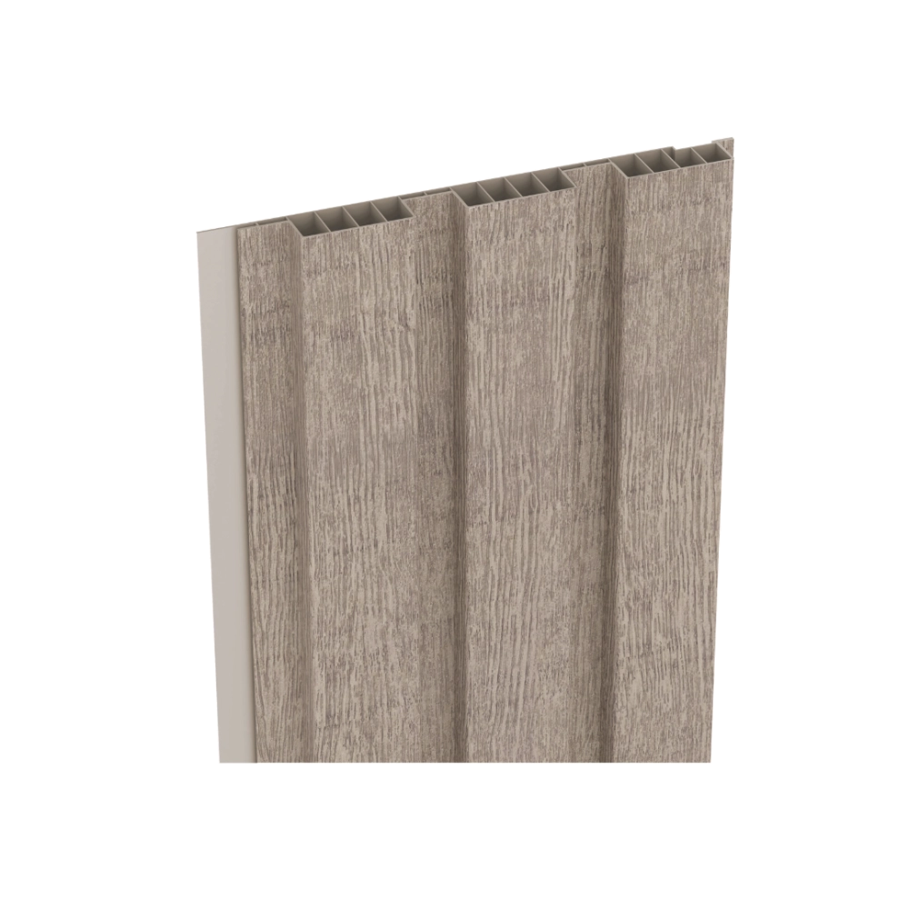 A Coleção Crossout, agora na sofisticada cor Ash, foi desenvolvida para transformar áreas externas com elegância, resistência e praticidade. Este revestimento em barras, produzido em PVC 100% virgem, apresenta um visual que remete à madeira cinza, conferindo um toque contemporâneo e imponente aos projetos, sem exigir a manutenção constante de materiais naturais.