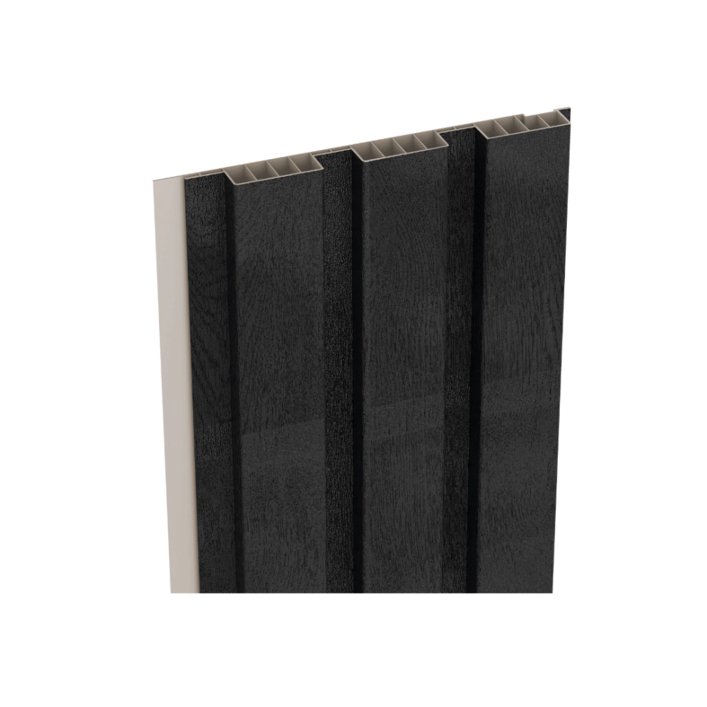 A Coleção Crossout, na imponente cor Ebony, foi criada para levar sofisticação e personalidade aos projetos externos. Produzido em PVC 100% virgem, este revestimento em barras apresenta um acabamento preto marcante, perfeito para composições modernas, ousadas e de alto impacto visual, sem exigir os cuidados constantes que materiais naturais demandam.