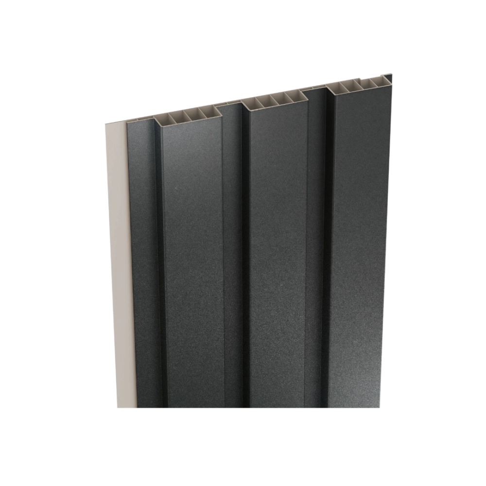 A Coleção Crossout, na elegante cor Metallic Black, une resistência e modernidade para criar acabamentos externos com alto padrão estético. Produzido em PVC 100% virgem, este revestimento em barras apresenta um acabamento preto metalizado sofisticado, que combina o requinte do efeito metálico com a durabilidade de um material projetado para enfrentar sol, chuva e maresia sem perder o brilho ou a cor.