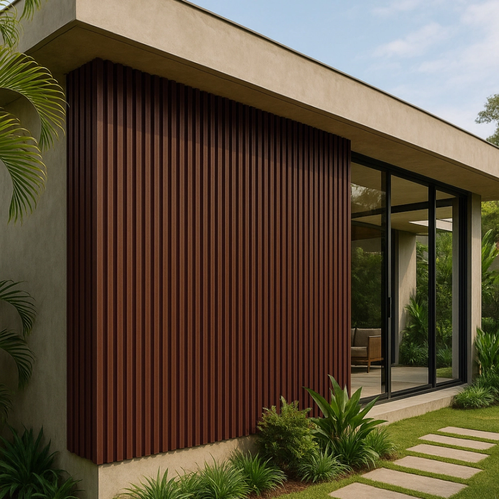 Projetado para fachadas, muros, áreas sociais e ambientes ao ar livre, o Crossout na cor Walnut é resistente aos raios UV, à água, à umidade, à maresia e a pragas, garantindo beleza e durabilidade por muitos anos. Sua instalação é prática e versátil, podendo ser feita com cola e/ou parafusos (fixadores embutidos e invisíveis), o que reduz tempo e custos de obra. Compatível com diferentes tipos de superfícies — como paredes de alvenaria, madeira, drywall, steel frame e placas cimentícias — é também leve e fácil de transportar.