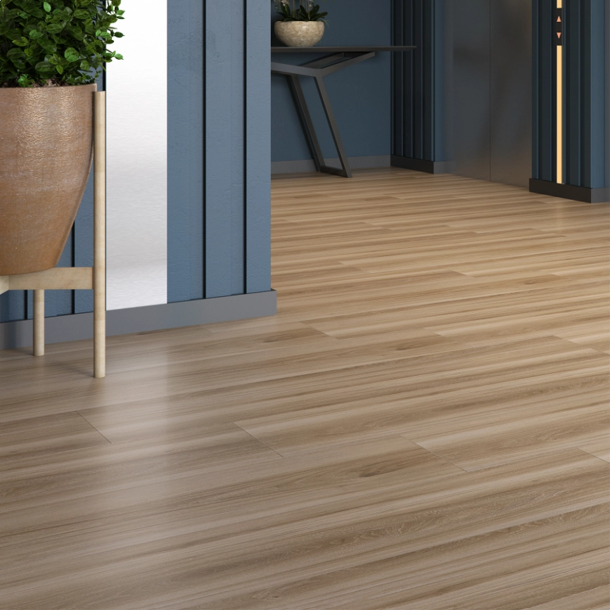 Os pisos laminados Eucafloor se destacam pela durabilidade e resistência. A tecnologia em camadas, incluindo uma camada superior de filme cristalino de óxido de alumínio e resina melamínica, oferece resistência a riscos, proteção contra líquidos e facilidade de limpeza, estendendo a vida útil do produto.